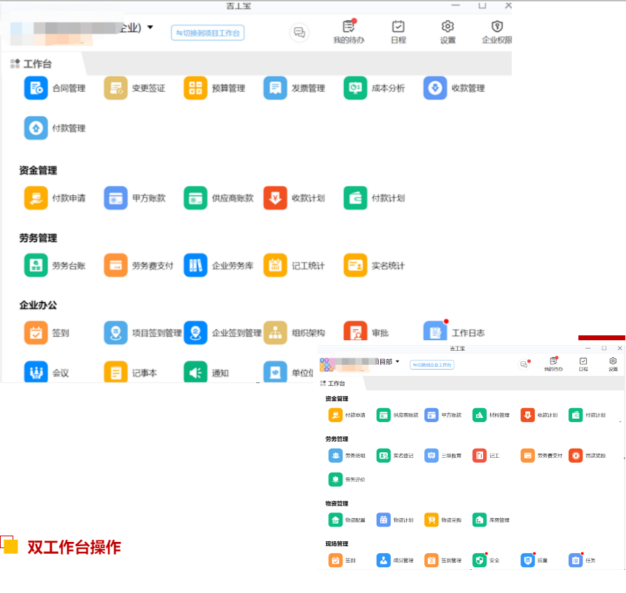 同鑫达建筑运用吉工宝工程项目管理系统近半年,通过企业台和项目台双向操作,企业和项目同时办公,数据互通,业务单据快速流转,各项数据实时生成,工作协同效率提升40%。同时,吉工宝还将公司多个项目的信息打通,文档永久留存,实现了资源的合理调配和内部平衡。